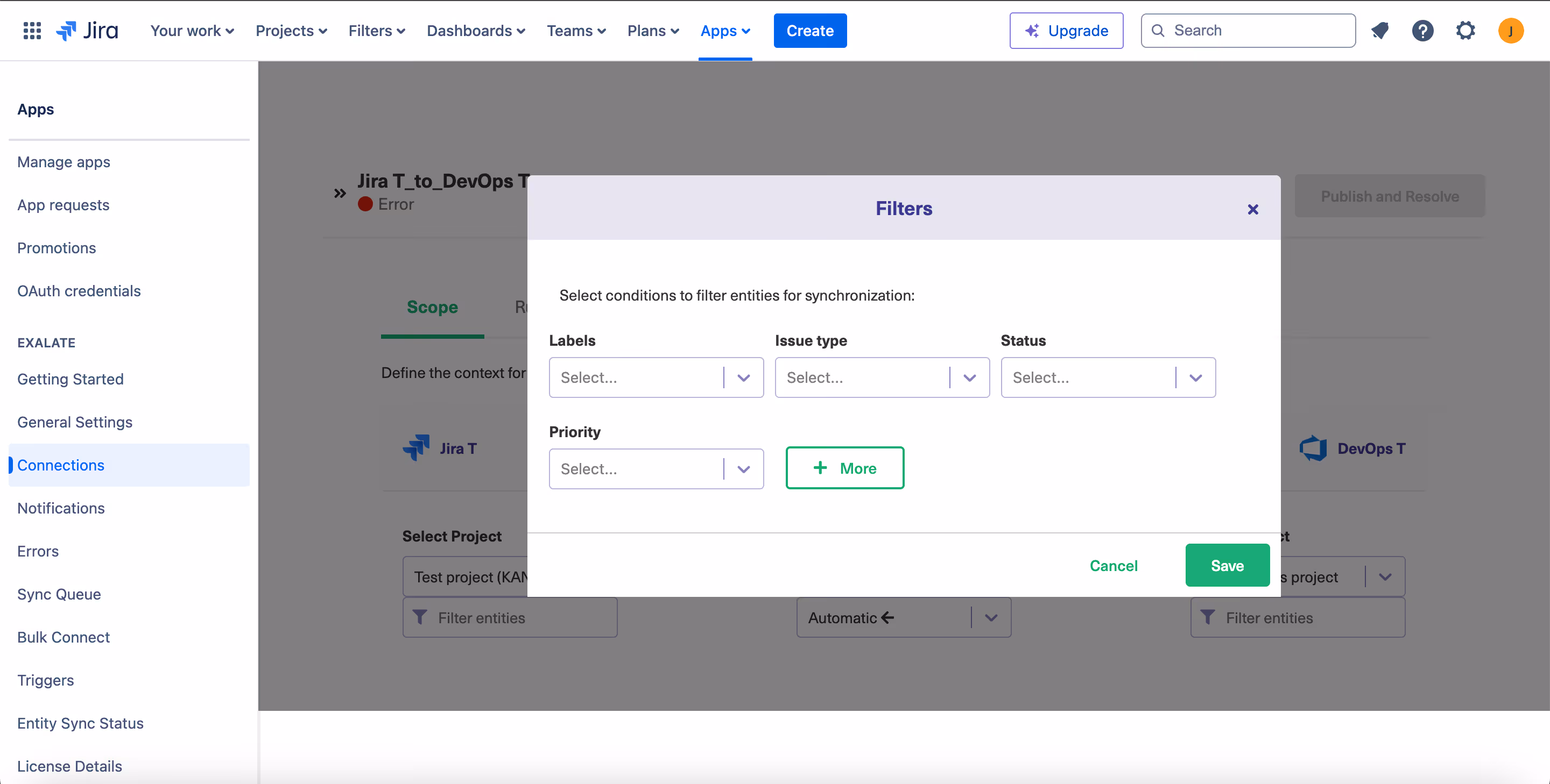 For example, to integrate Jira with DevOps, you need to download and install Exalate on Jira and then separately on DevOps. You also need to configure the app separately in each tool.