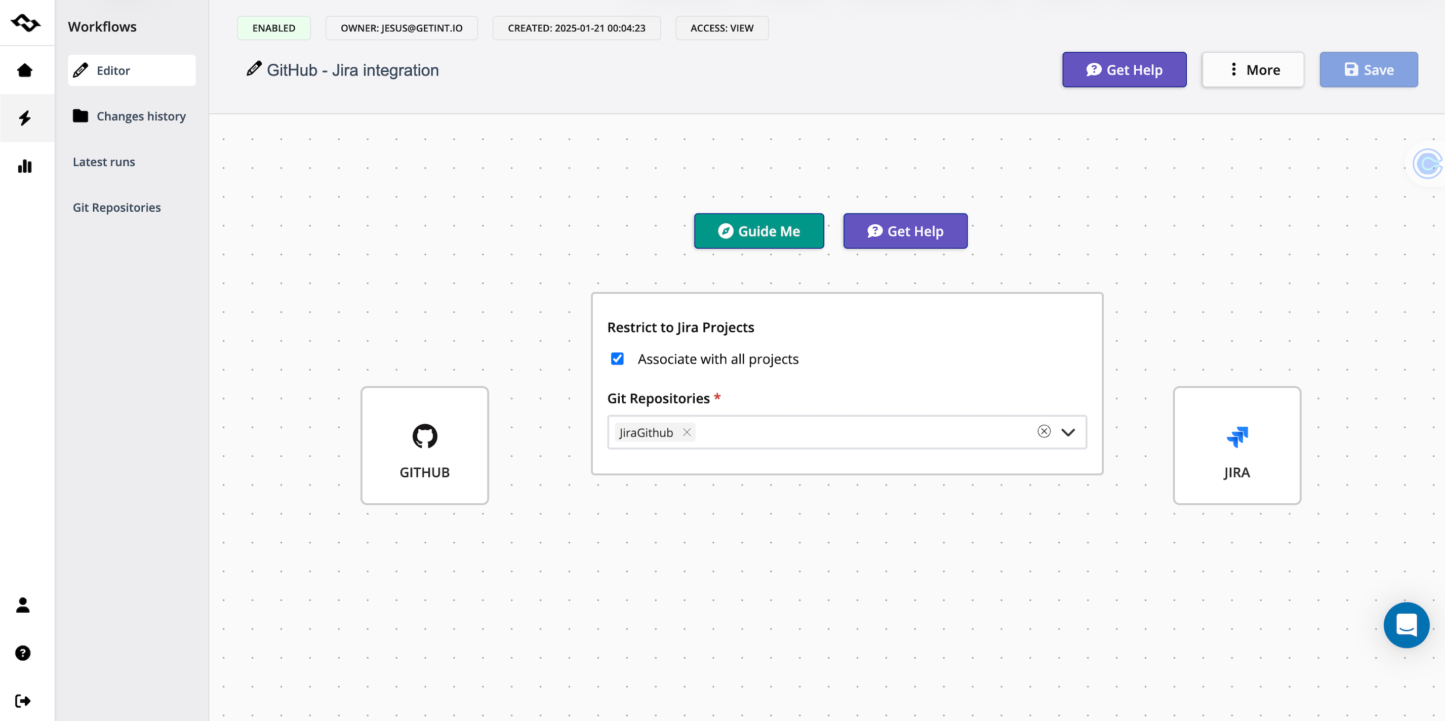 Connecting Jira with GitHub is straightforward, especially when using a unified connector like Getint. The setup requires only a few minutes, and once configured, it keeps your work and code in sync automatically. Let's take a look at a simplified version of the setup process based on Getint’s flow.