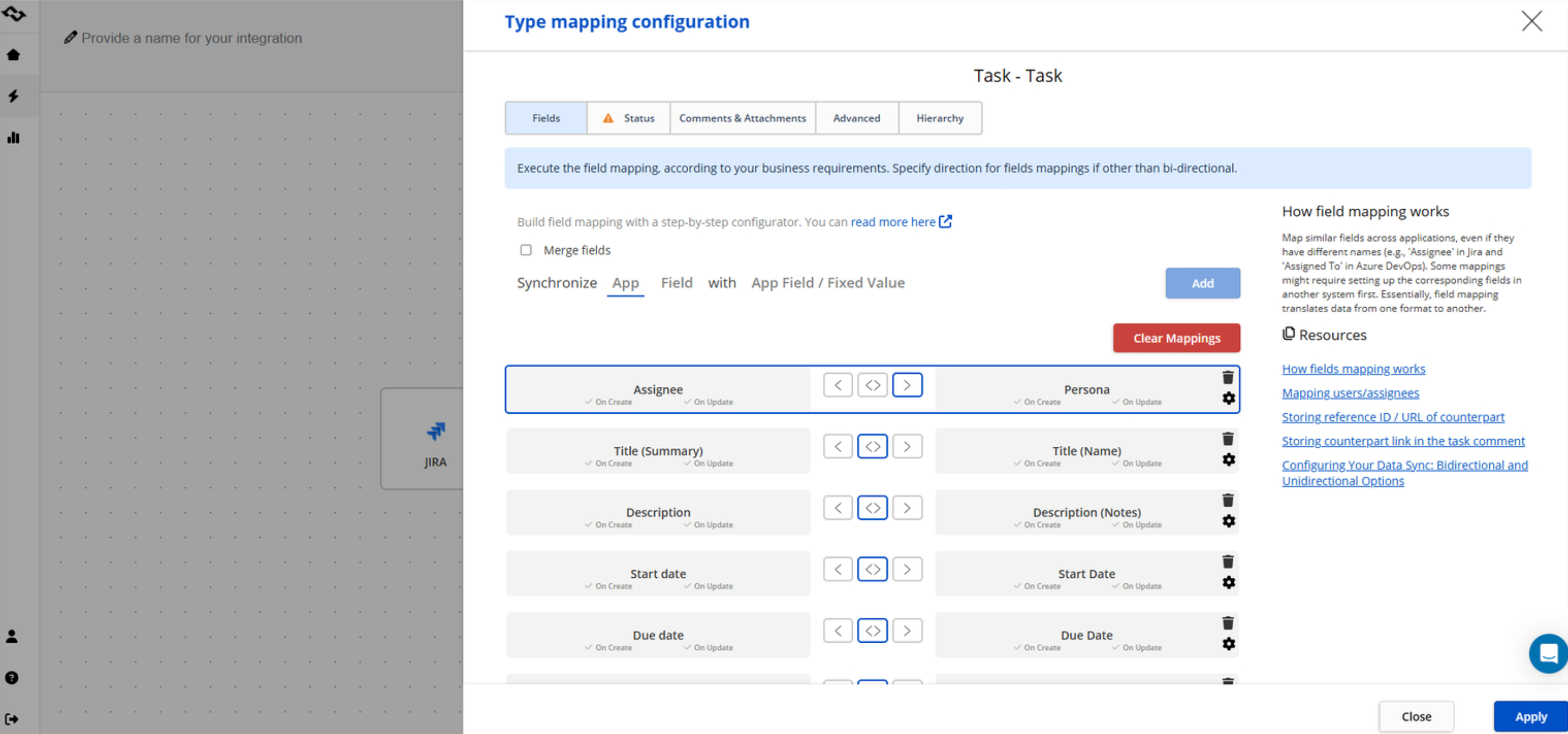 - Field Mapping: Aligning Asana’s custom fields with Jira’s issue types, standard fields, and specific fields.