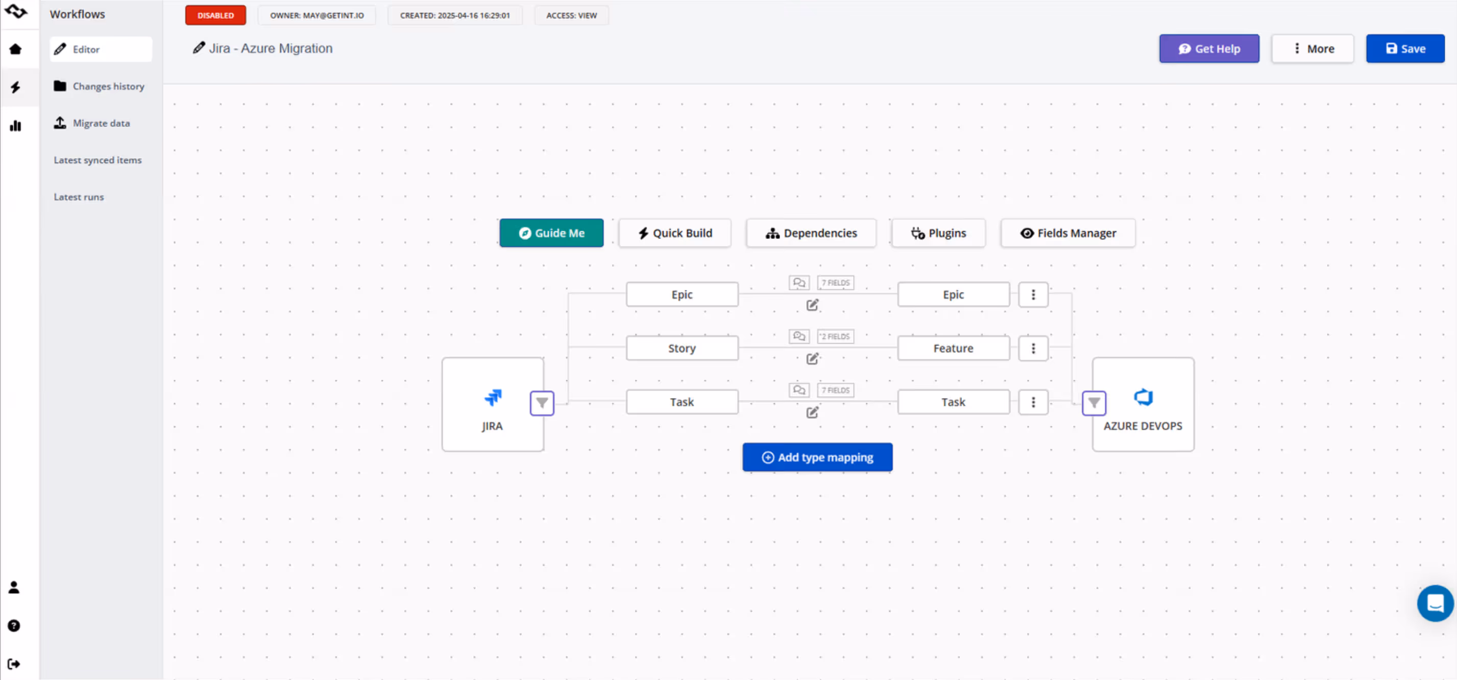 Use Getint’s intuitive mapping interface to align Azure DevOps work items with corresponding jira issues. Custom fields like Iteration Path or Area Path can be mapped or merged using JavaScript for greater flexibility.